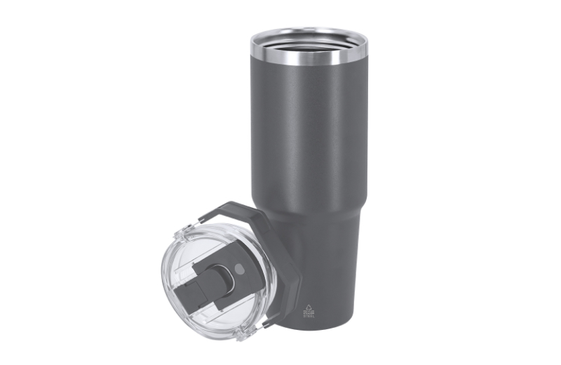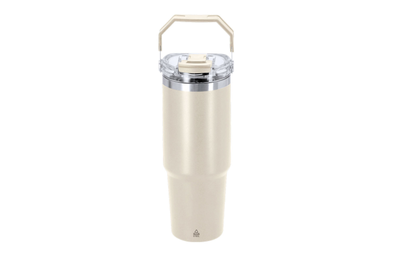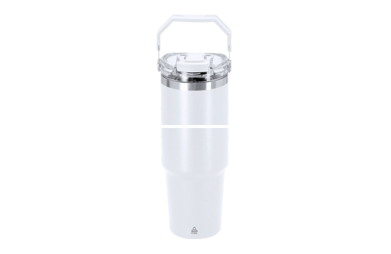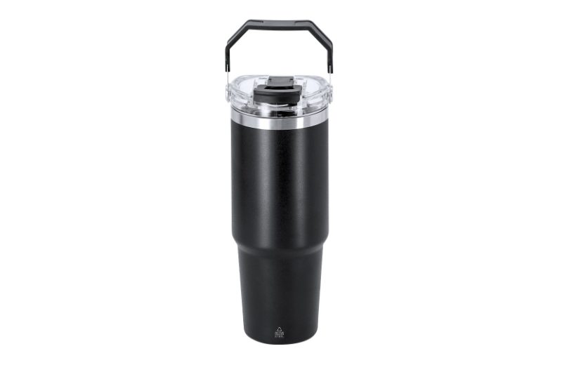 Unglaubliche 900 ml passen in dem praktischen Thermo-Becher aus recyceltem Edelstahl. Die doppelwandige Bauweise hält eingefüllte Getränke lang warm oder nach Wusch kalt. Ungewöhnlich ist nicht nur die enorme Kapazität des Thermalbehälters, sondern auch sein besonderes Trinksystem, bei dem entweder der angebrachte Trinkhalm oder die größere Trinköffnung genutzt werden kann. Der Verschluss riegelt den Becher auslaufsicher ab und mit dem Griff lässt sich der Thermo-Becher 900 ml aus Edelstahl leicht transportieren. In schwarz, weiß, marine-blau, grau oder beige erhältlich.